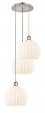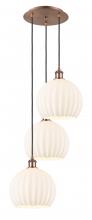 White Venetian - 3 Light - 17 inch - Antique Brass - White Venetian Shade - Cord Hung - Multi Pendant