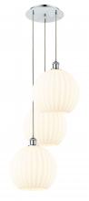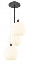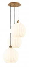 White Venetian - 3 Light - 19 inch - Antique Brass - White Venetian Shade - Cord Hung - Multi Pendant