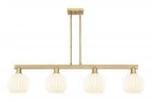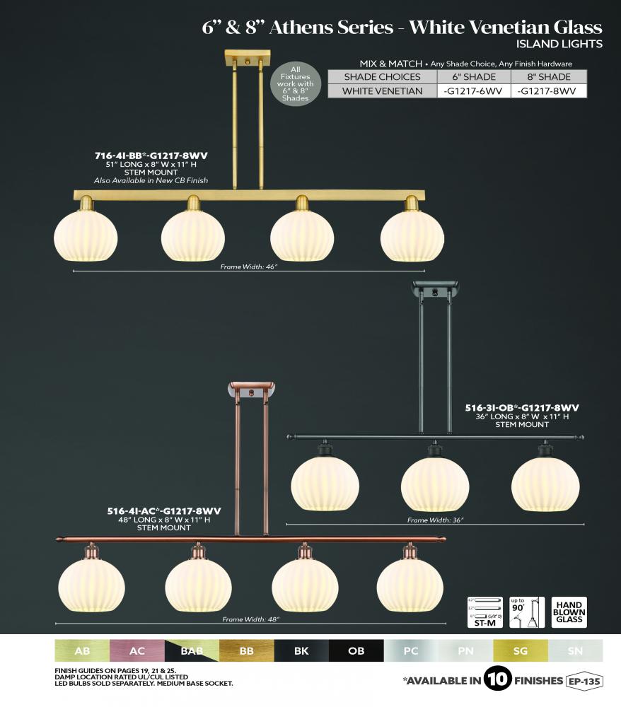 White Venetian - 4 Light - 48 inch - Antique Brass - White Venetian Shade - Stem Hung - Island Light