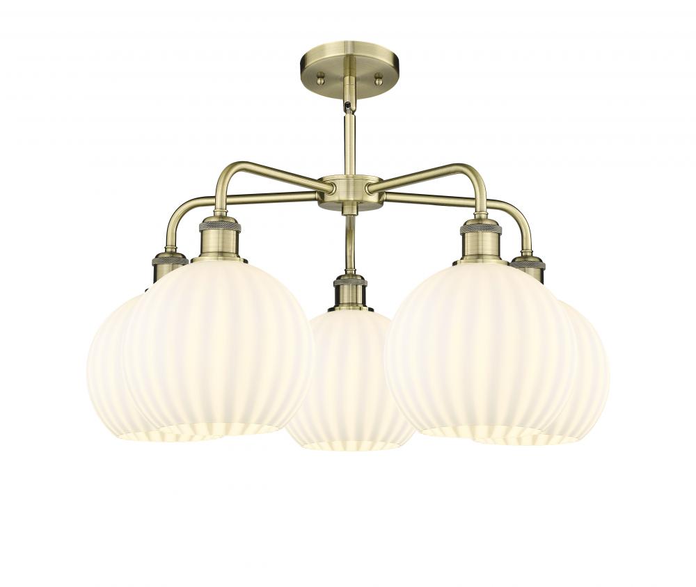 White Venetian - 5 Light - 26 inch - Antique Brass - White Venetian Shade - Chandelier