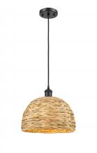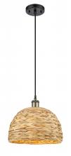 Woven Rattan - 1 Light - 12 inch - Antique Brass - Natural Shade - Mini Pendant