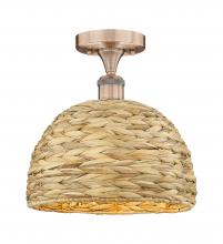 Woven Rattan - 1 Light - 12 inch - Antique Brass - Natural shade - Semi-Flush Mount
