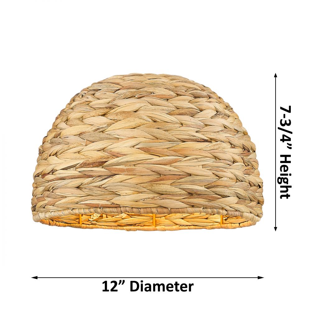 Woven Rattan - 1 Light - 12 inch - Oil Rubbed Bronze - Natural Shade - Semi-Flush Mount