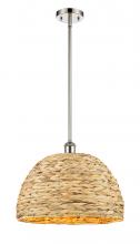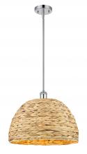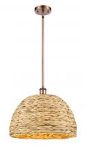 Woven Rattan - 1 Light - 16 inch - Antique Brass - Natural Shade - Mini Pendant