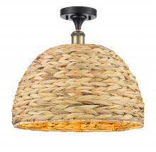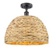 Woven Rattan - 1 Light - 16 inch - Antique Brass - Natural Shade - Semi-Flush Mount