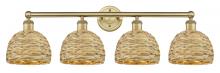 Innovations Lighting 616-4W-AB-RBD-8-NAT - Woven Rattan - 4 Light - 35 inch - Antique Brass - Bath Vanity Light
