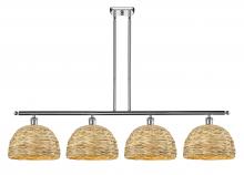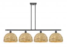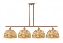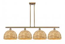 Woven Rattan - 4 Light - 50 inch - Antique Brass - Natural Shade - Multi Pendant