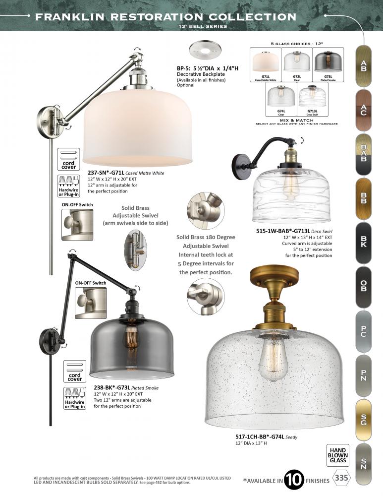 One of our largest and original collections, the Franklin Restoration is made up of a vast selection of heavy metal finishes and a large array of metal and glass shades that bring a touch of industrial into your home.