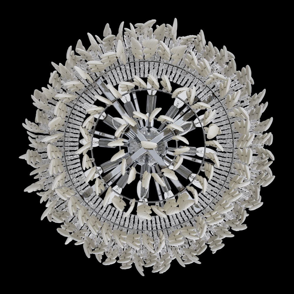 Butterflies' wing-like Bone China accent creates material contrast with crystals making this collection visually softens and lighter.