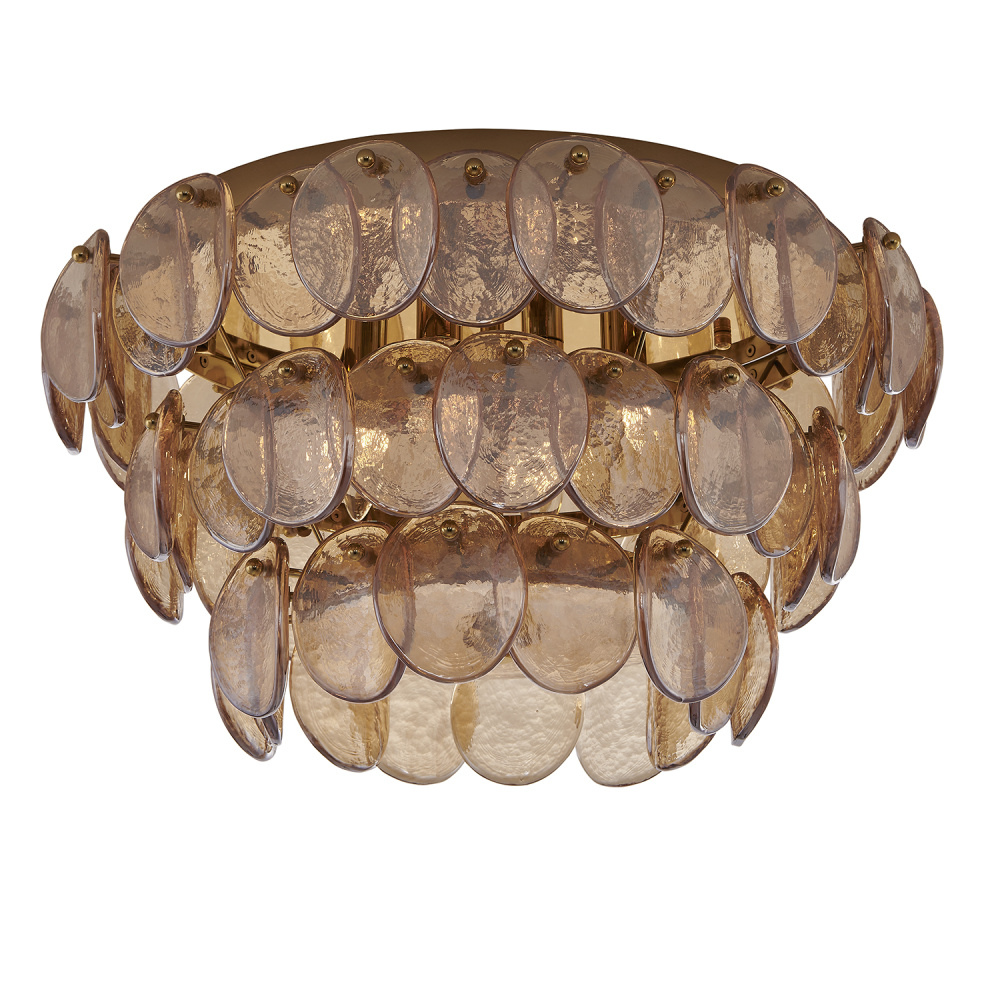 Illuminate your space with our fish scale-inspired Uroko collection. Glass discs are expertly crafted to provide a subtle yet striking lighting effect, creating a warm and inviting ambiance wherever it is placed. Our Polished Winter Brass (PWB) or Black Nickel (BN) finishes coordinate with the glass to create a shimmering focal point to any room.