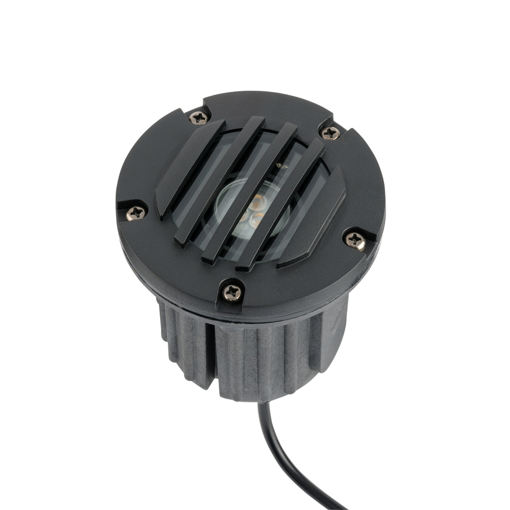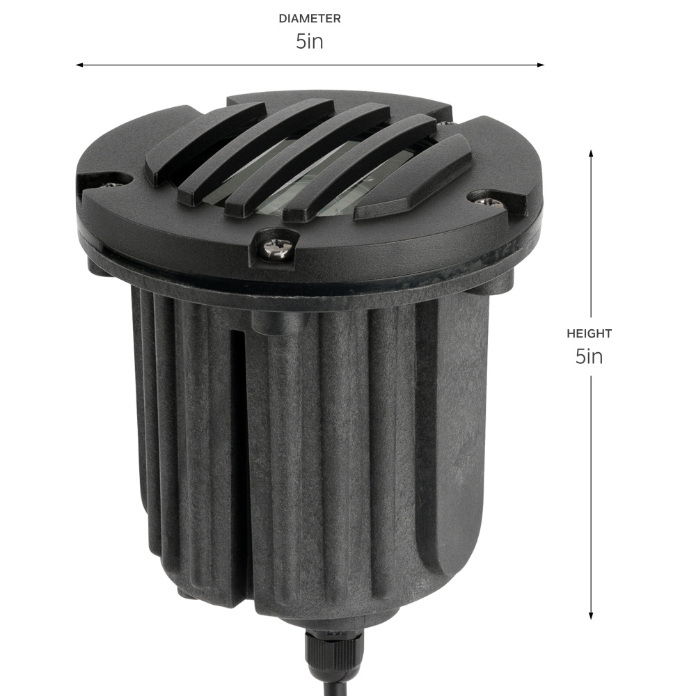 12V Brass Rock Guard In Ground with Lens in Black Brass is an in-ground fixture with articulating adjustability. Features a sealed glass enclosure to protect against debris and water, and is gasketed and threaded to the fixture with lamp clips for installation ease. The plastic composite sleeve is great for well light applications, and its rock guard and cowl top allows the fixture to be exposed and the light to be adjusted above the fixture. The Articulating Well Light with Rock guard is made of Black Brass. This solid, thick-walled, cast brass fixture are ideal for most environments, including harsh coastal climates and is backed by a 10 year warranty.