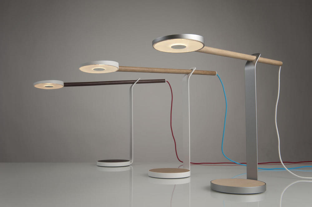 Gravy brings LED technology and the warmth of wood to your home or office lighting. Edge lit technology provides a soft, evenly distributed glow of warm light. Simply tap the center of the underside of the light ring, and touch and hold to dim or brighten the light. The wood bar holding the illuminated LED head swivels 360 degrees, and also slides back and forth to provide the user with perfect lighting placement.