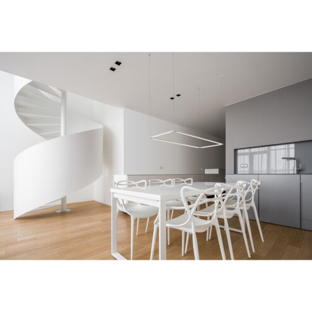The Z-Bar Pendant line is an architectural lighting system featuring modular LED light bars. Choose from a variety of standard shapes, or design your own pendant using Koncept's dedicated web app. The "Rectangle" is a minimal standard shape featuring 4 rotatable luminaires. Compatible with ELV wall dimmers.