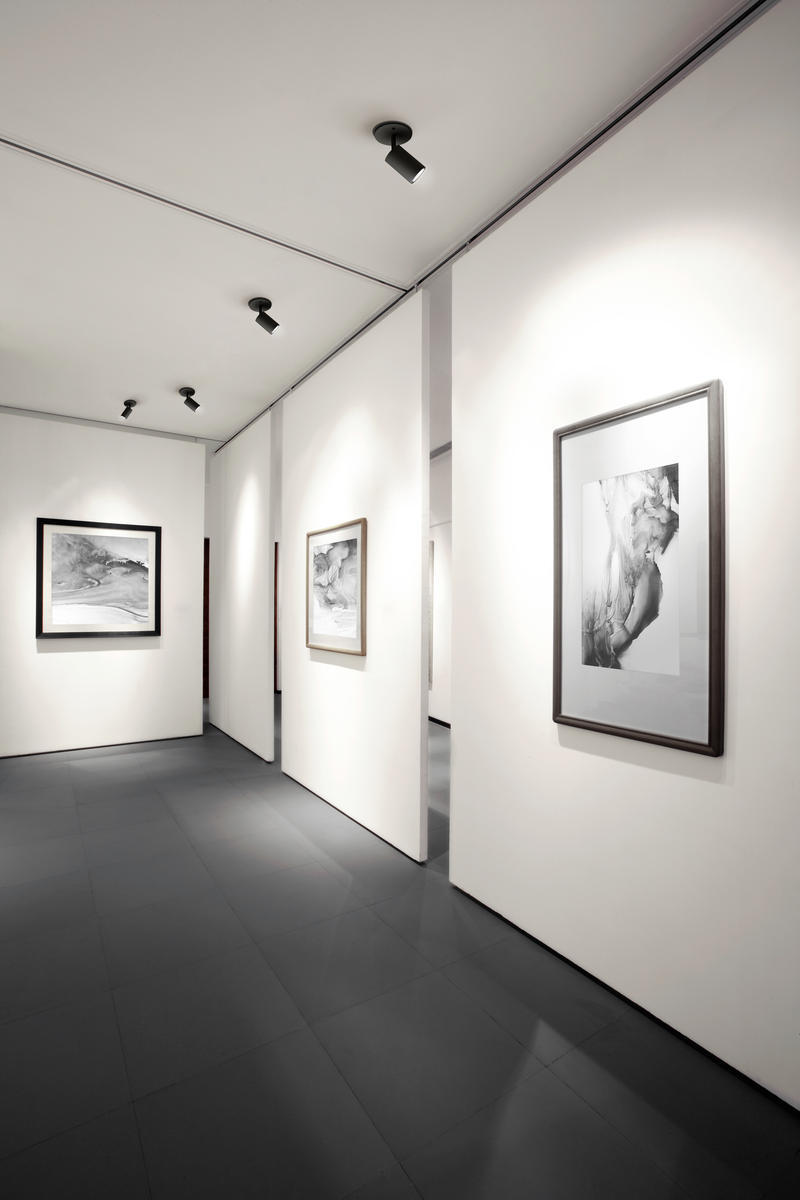 Cylindrical lamp head with recessed bulb socket. Circular attachment plate with vertical stem. Powder-coat finish. Adjustable directional light (90 Degrees).