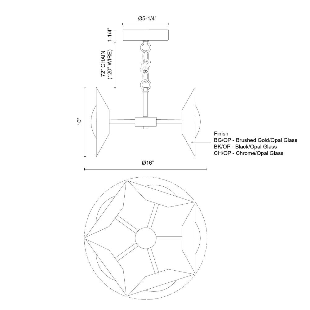 Kuzco Lighting Inc CH77916-BG/OP-UNV - Cleo 16-in Brushed Gold/Opal Glass LED Chandelier