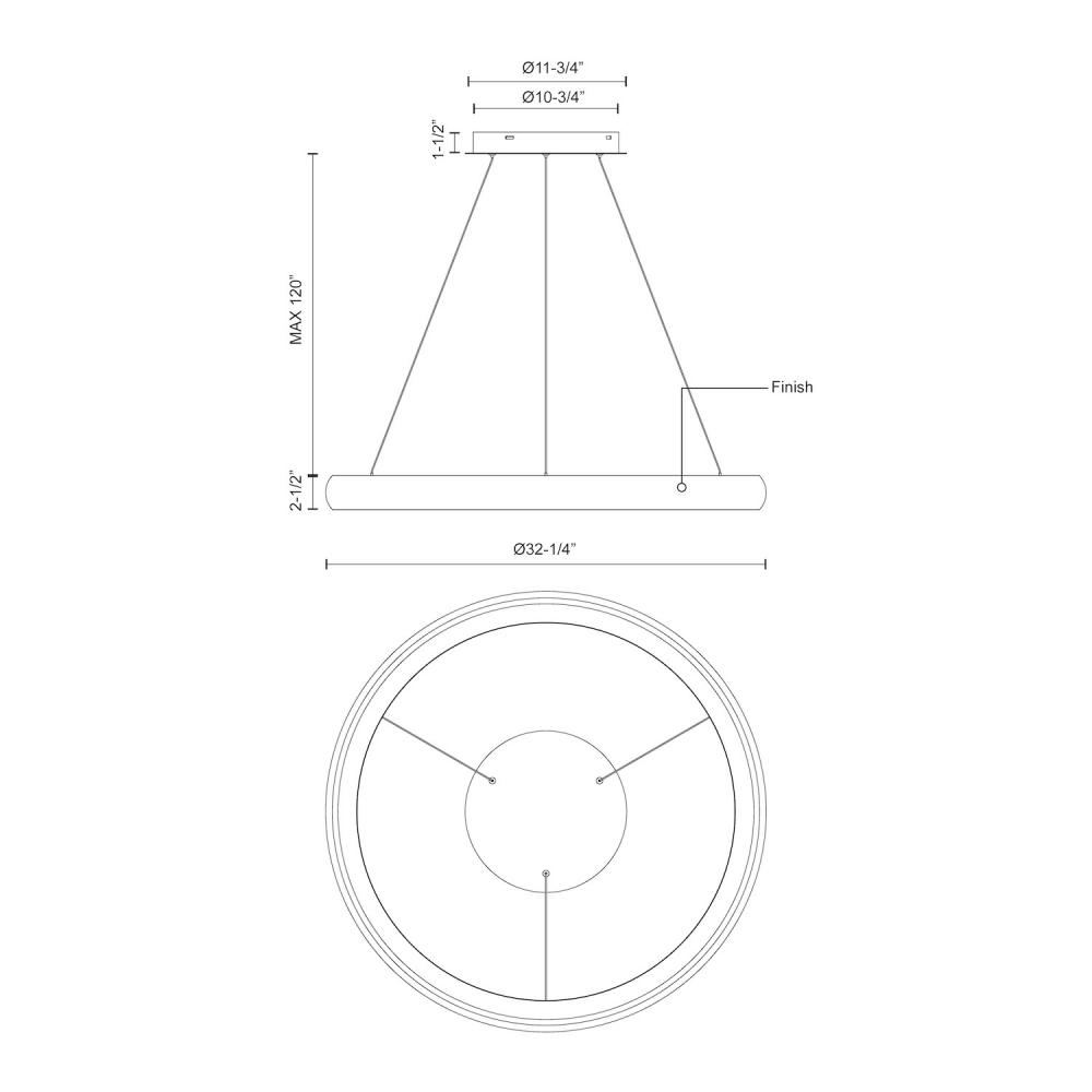 A curved band of powder-coated aluminum arcs around a central void forming and encapsulating an illuminated ring. Held within the perimeter structure of the CORTANA pendant is a circumferential LED light array spreading uniform radiance via the polymeric diffuser loop. Available in multiple sizes.