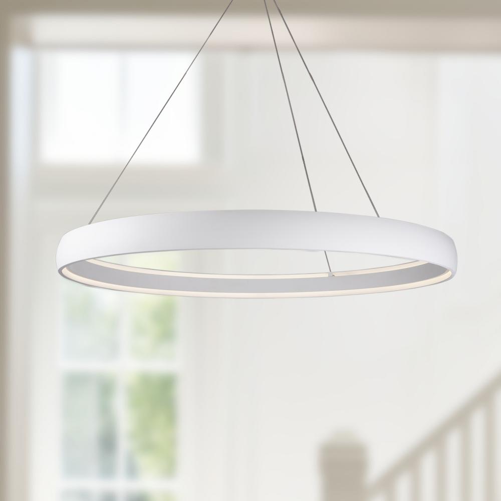 The circular Halo light makes a sleek and bold statement. This fixture illuminates your room in a smooth circular pattern, which is both modern and minimal. Available in four sizes and three finishes: Black, White and Brushed Nickel. They can be arranged in a tier formation to complement your space.