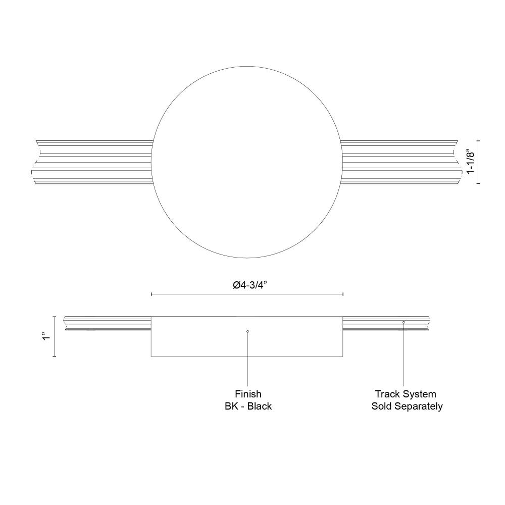 Center Feed Canopy can be placed anywhere on the Trilo track with rail cutouts on either side of the circular body.