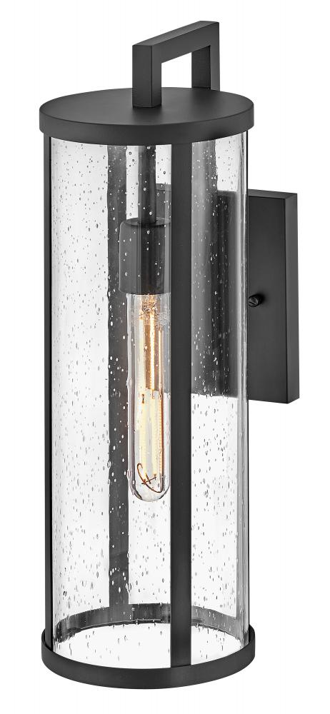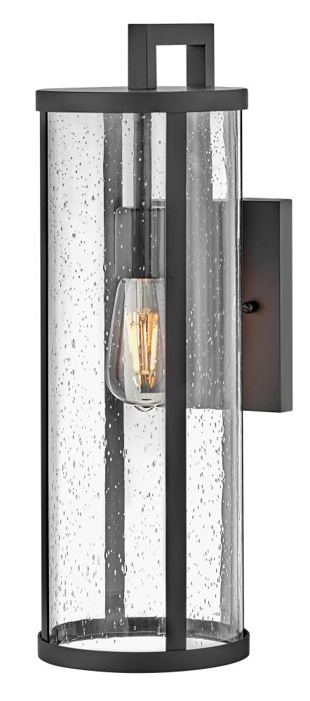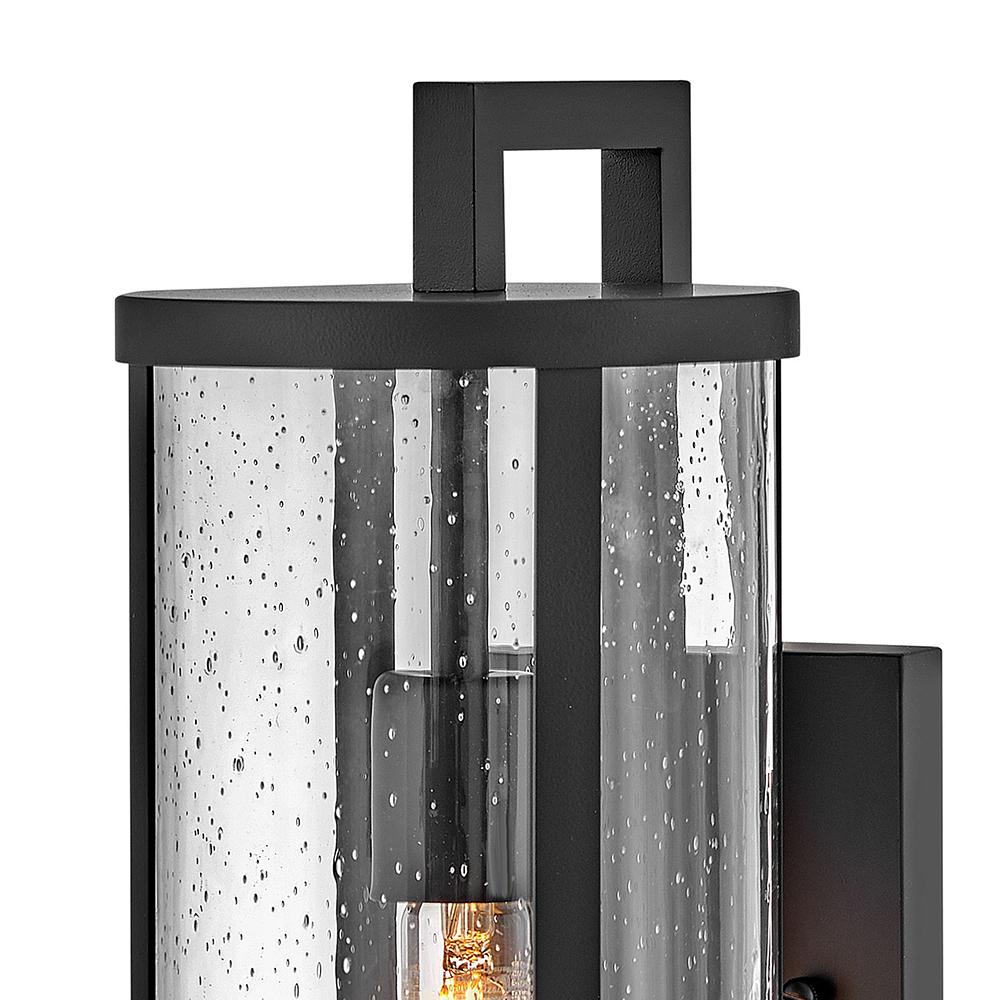 Alfie boosts curb appeal with effortless style. This transitional wall mount lantern features an easy-on-the-eyes cylindrical profile, bold Black metal frame and sizable clear seedy glass finessed to flatter any exterior. Pro tip: we recommend vintage filament bulbs to make Alfie really shine.