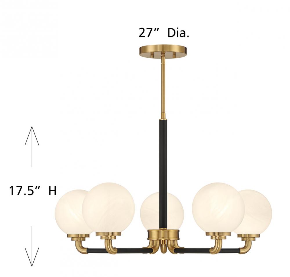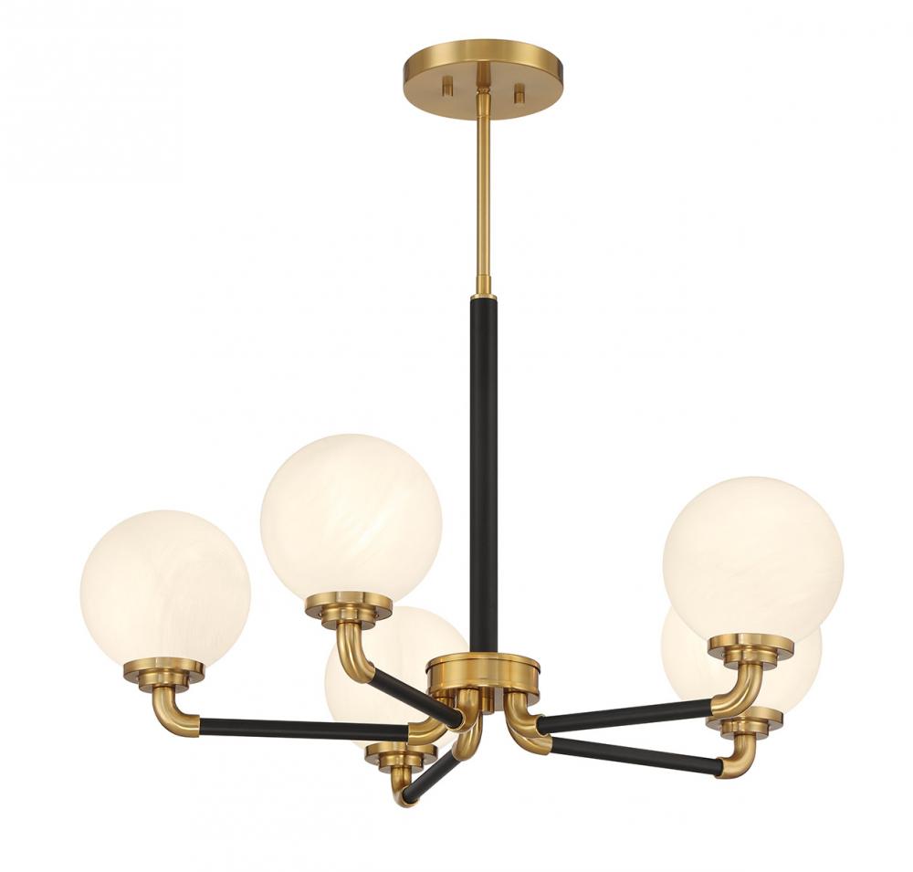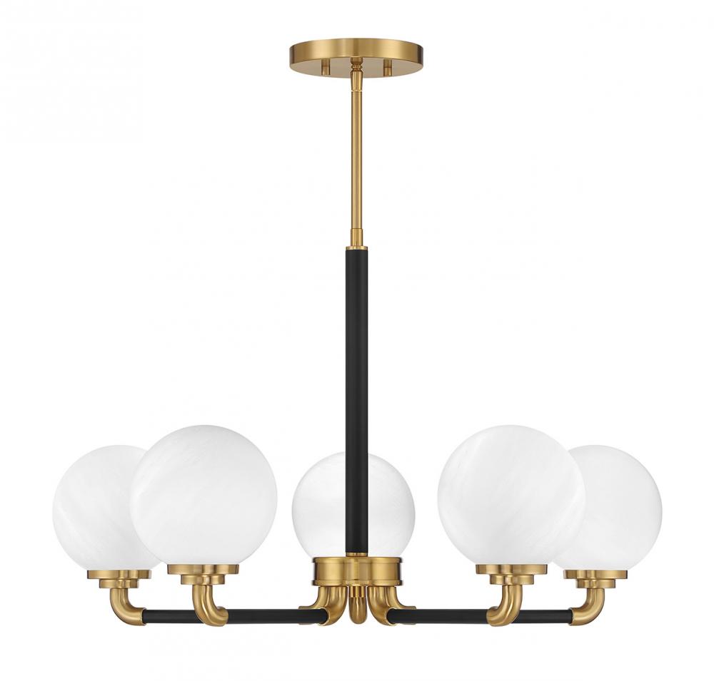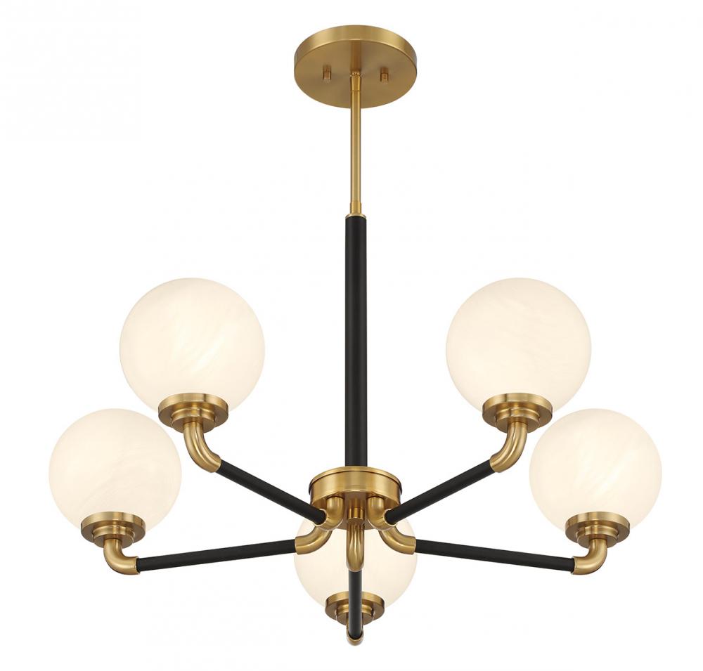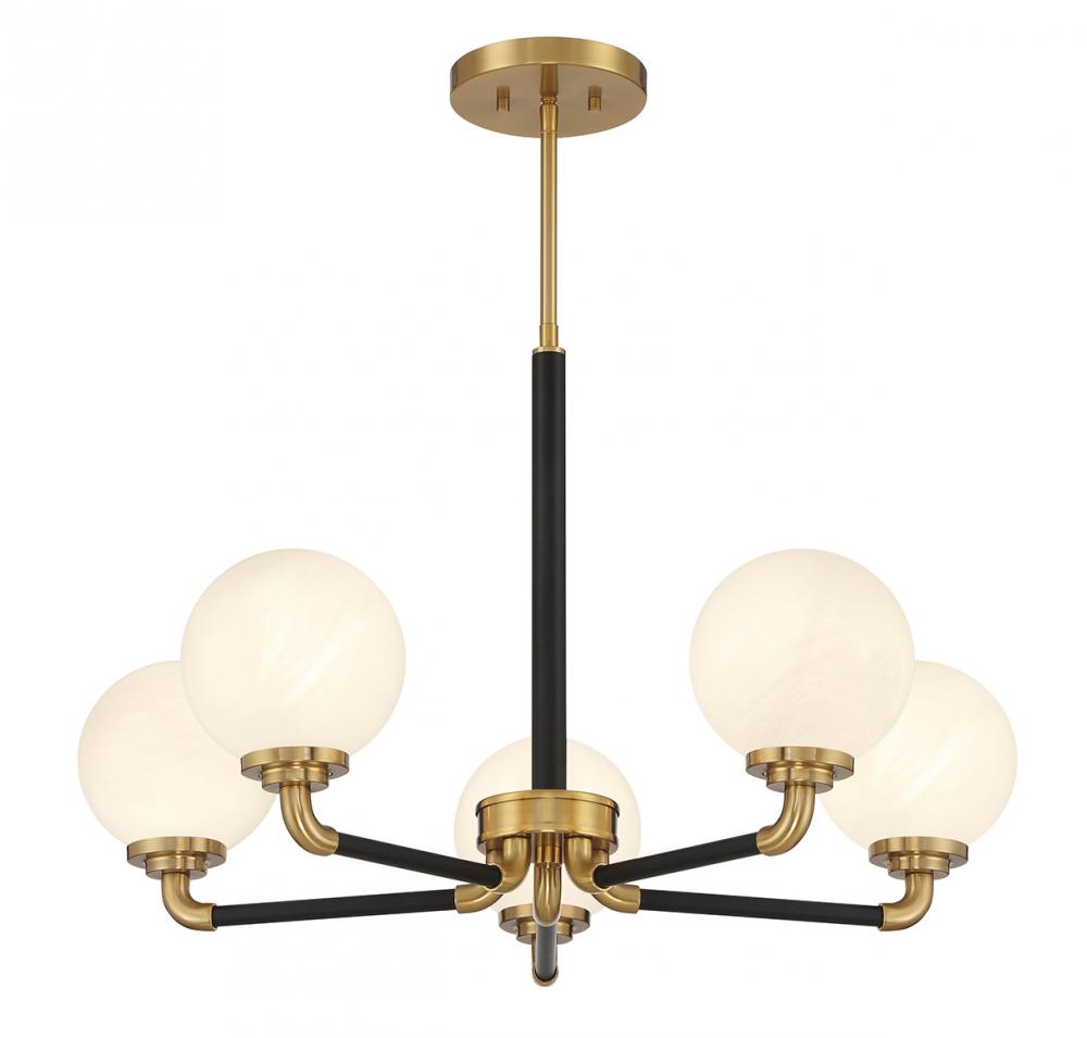 Dresden 5-Light Chandelier in Matte Black with Warm Brass Accents