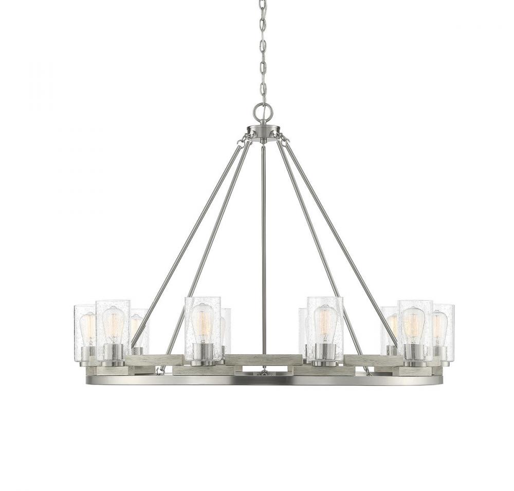 Lynwood 10-Light Chandelier in Satin Nickel with Greywood