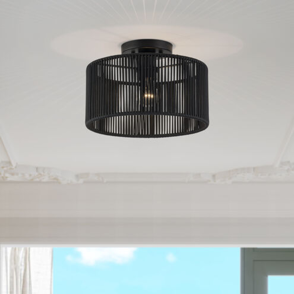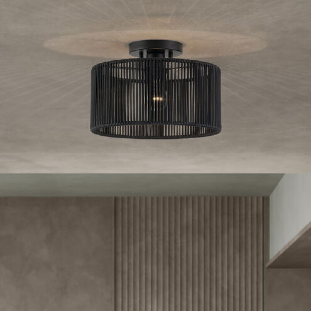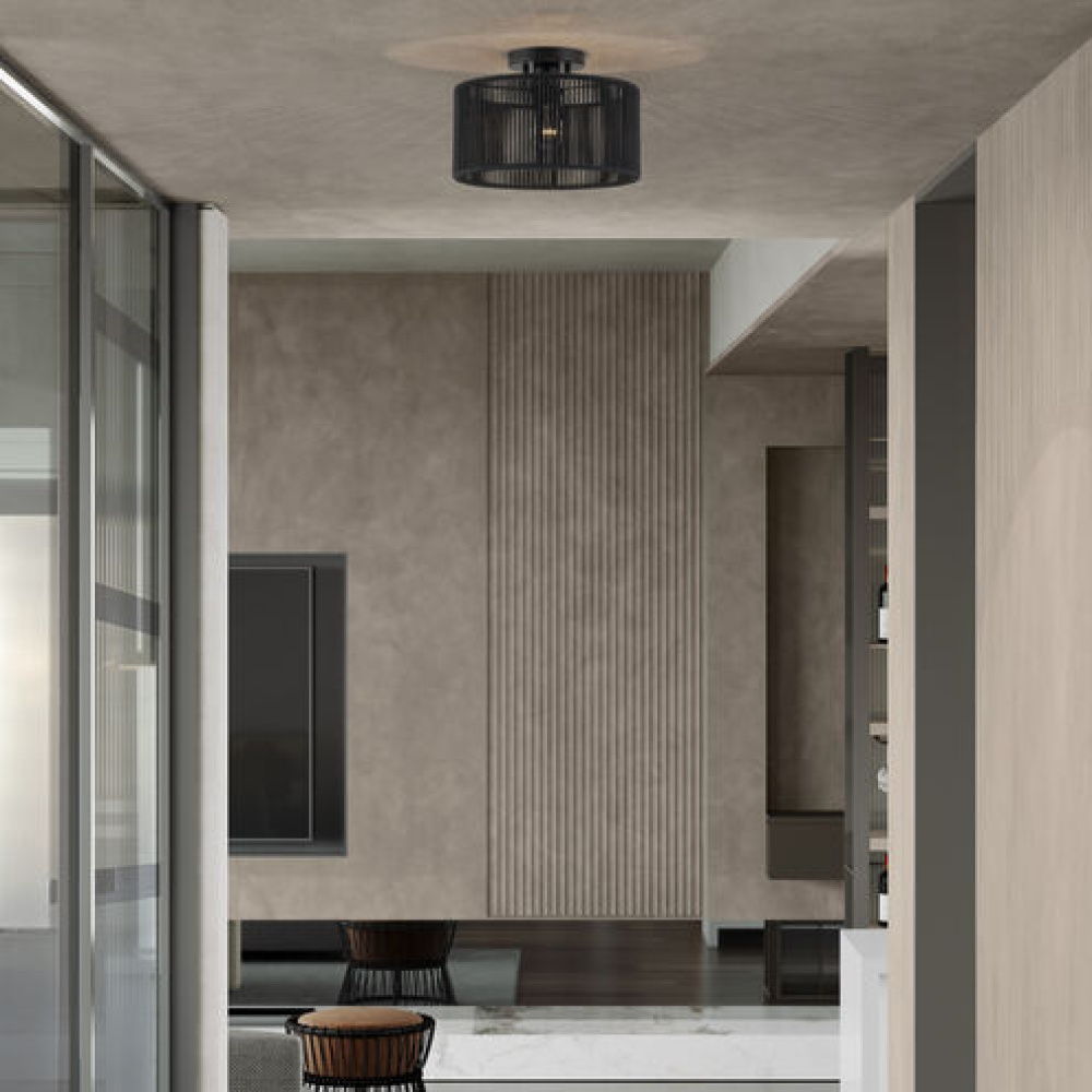 What a joy to come home to the calming, balanced and stylish Acordia lighting collection, with its semi-transparent texture and dynamic illumination! This midcentury modern lineup of elegant ceiling and wall lights features minimal metal frames with dimensional drum-shaped, tiered shades – masterfully handwoven with silky-smooth, highly-durable polyester rope, finished in noble, natural and atmospheric colors.