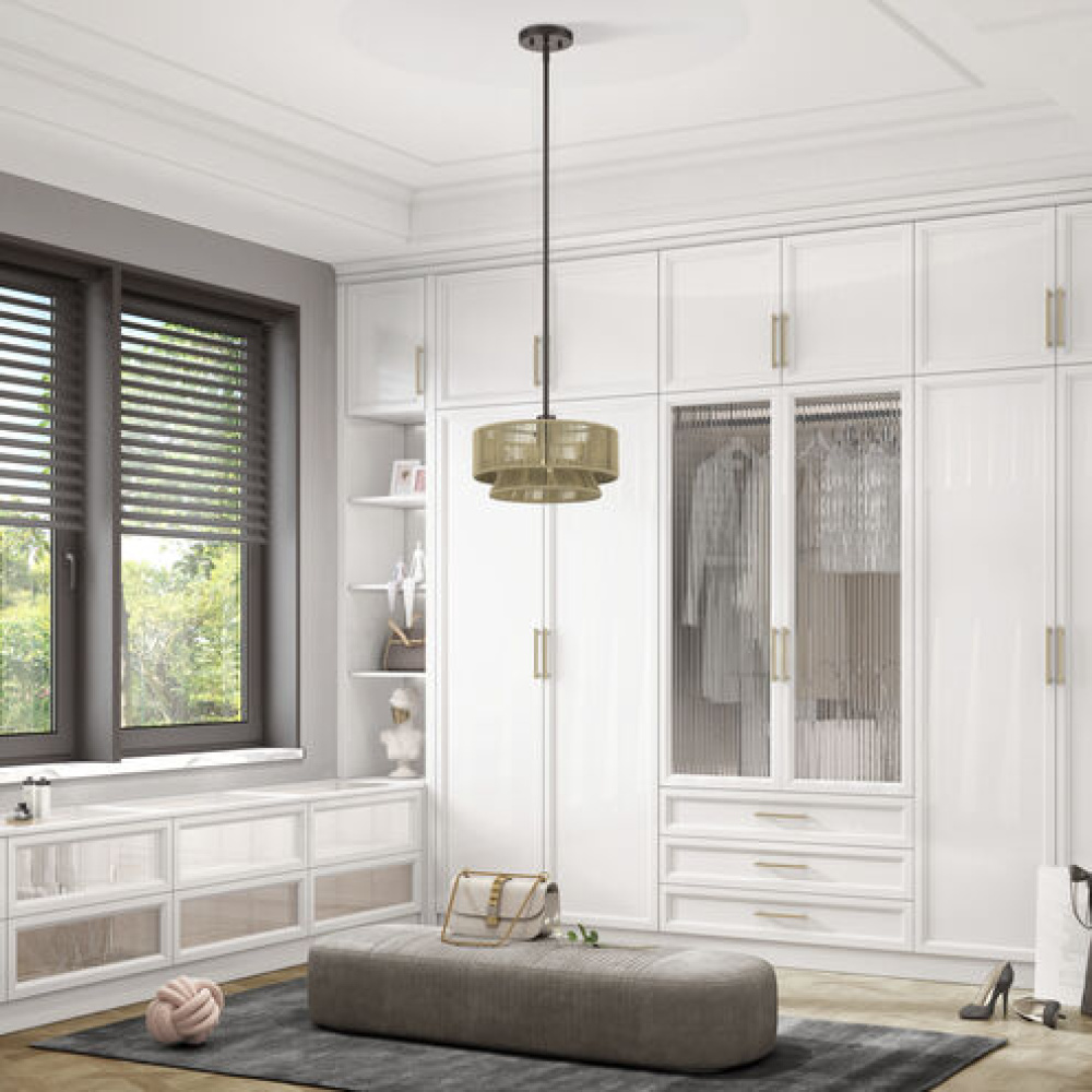 For additional 12" D12.7 MM stems, order 56050-92. Accommodates sloped ceilings. Open bottom. Bulb options - A19.