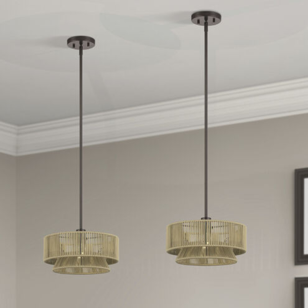 Laidback yet disciplined, the midcentury modern Florell lighting collection celebrates all versions of You: from “beach-haired weekender” to “visionary CEO”. with a vast selection in dramatic colors, this boho-inspired design features minimalist metal frames supporting drum-shaped, tapered and tiered shades – beautifully hand-threaded with sleek (fade- and fray-resistant) polyester rope. Semi-transparent texture allows for creating nuanced shadowing effects.