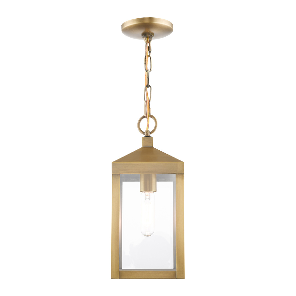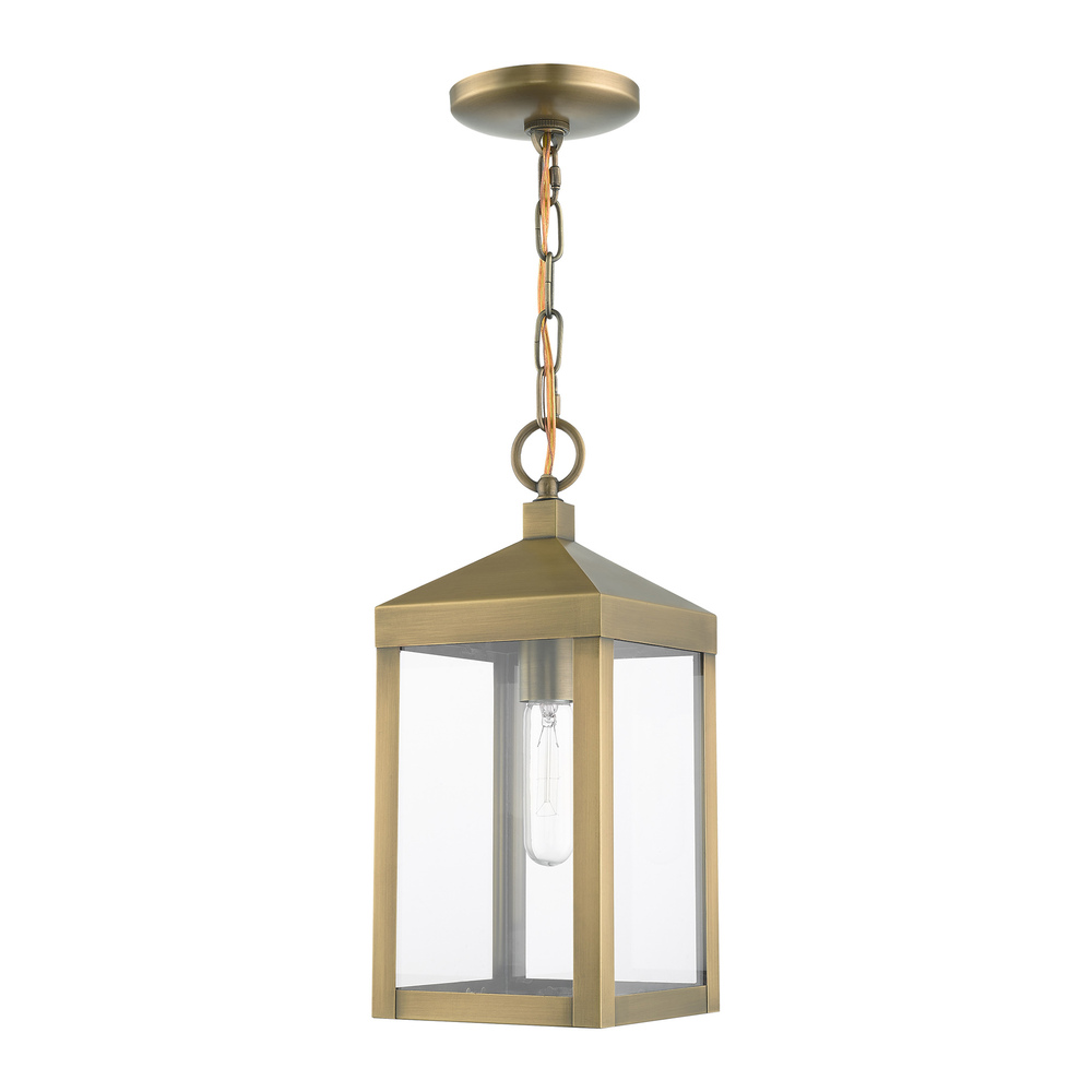 1 Light Antique Brass Outdoor Pendant Lantern