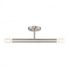Exposed bulb sockets are fixed over the antique brass finish to create an eclectic look perfect for mid century modern or transitional spaces wanting an industrial touch.