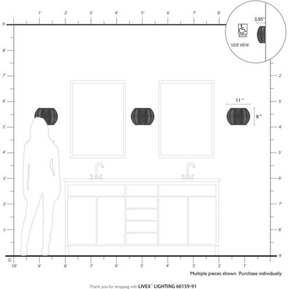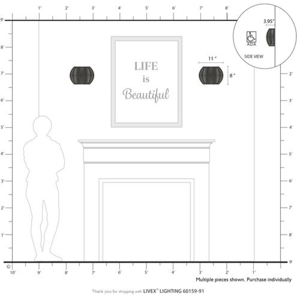 Livex Lighting 60150-91 - 1 Light Black ADA Sconce