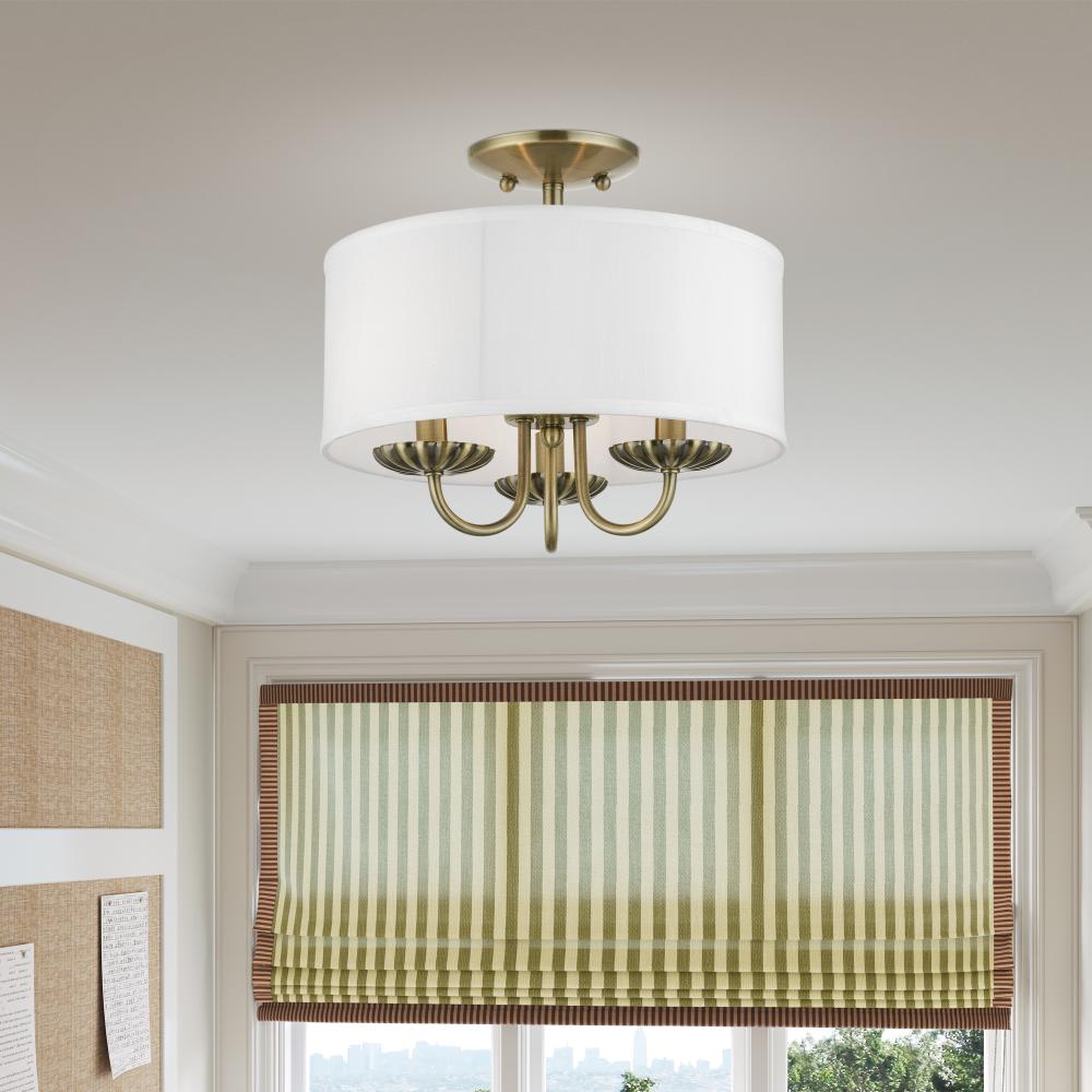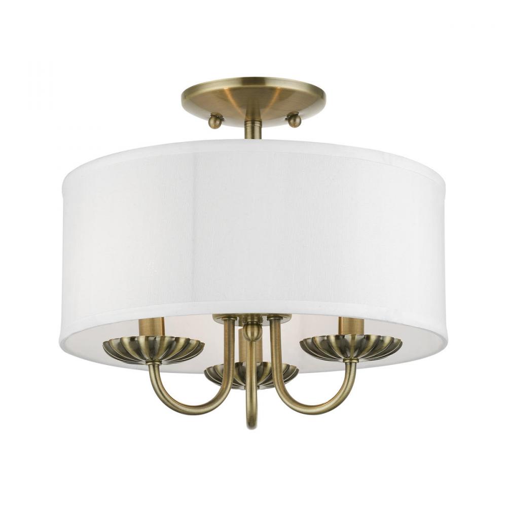 3 Light Antique Brass Semi-Flush Mount