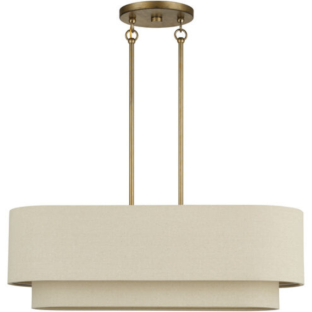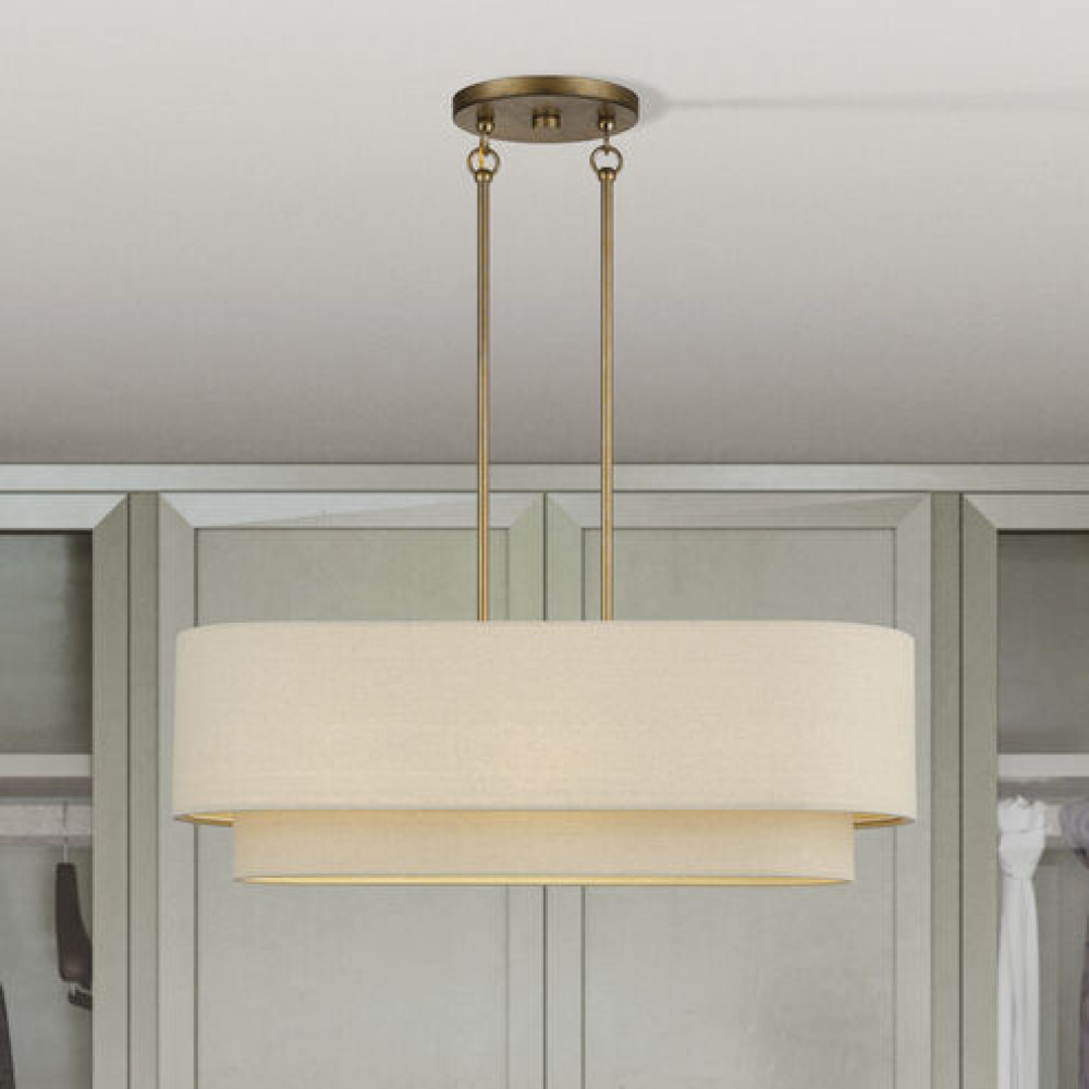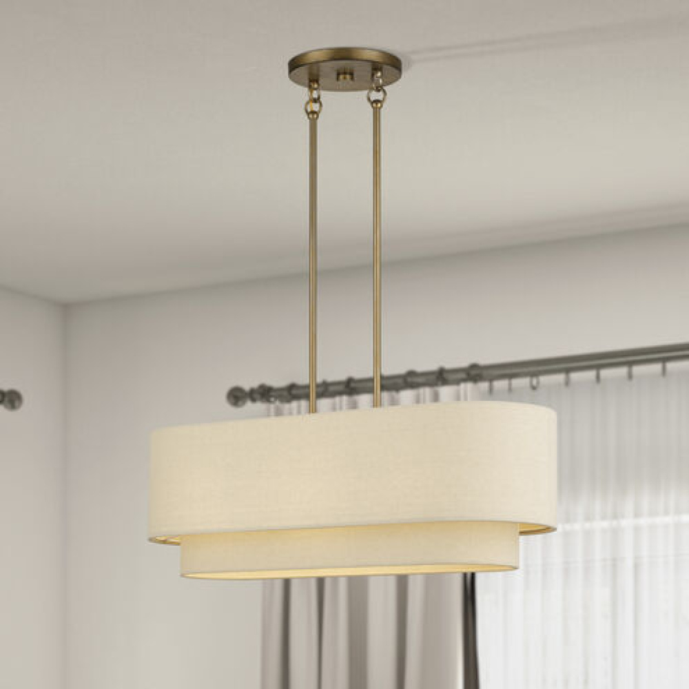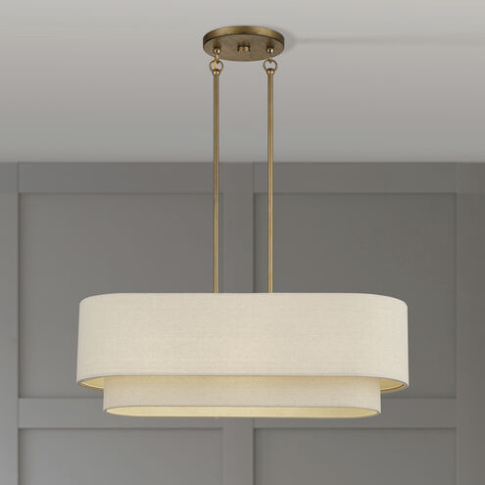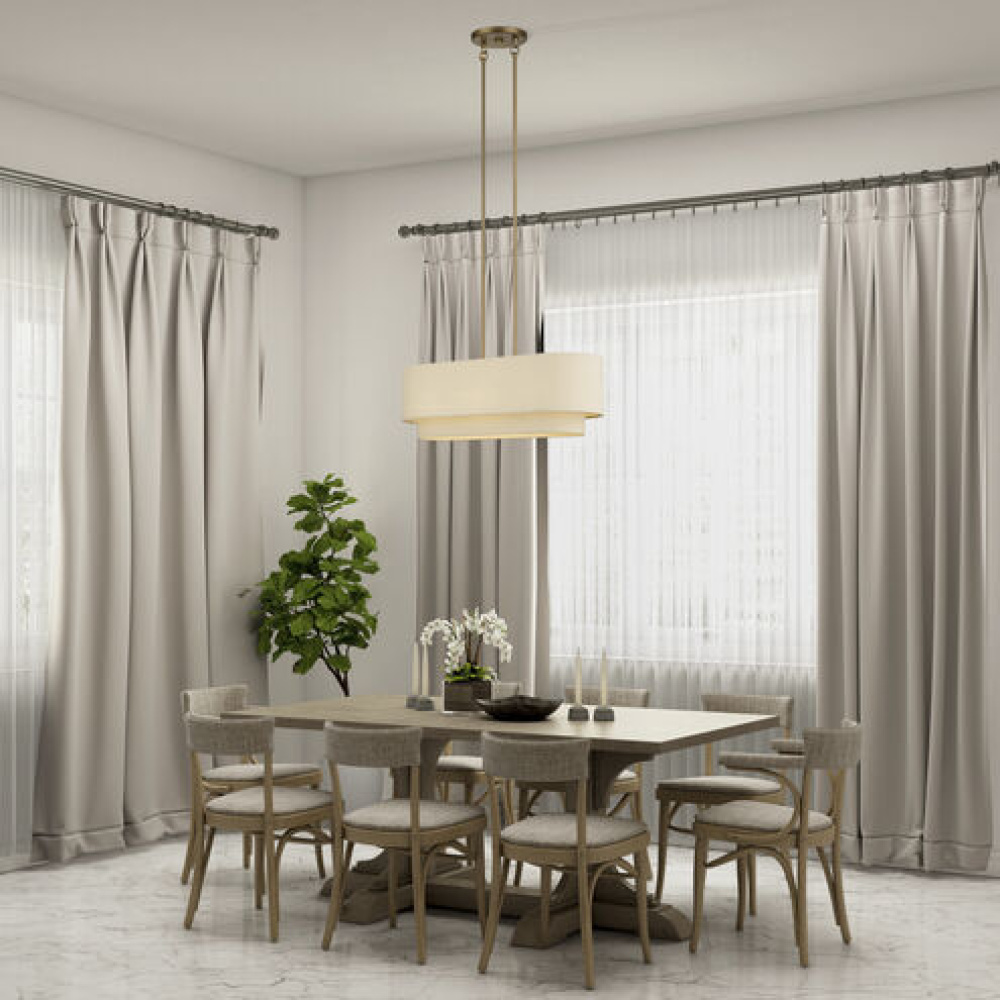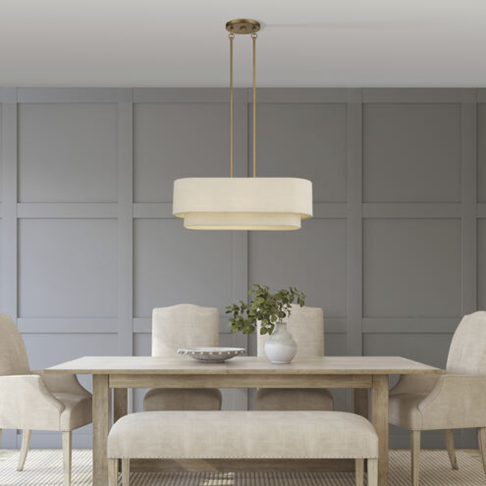 If you love the minimalist, natural aesthetic of mid-century modern design, you’ll adore the organic colors and the phenomenal illumination of the timeless Bellingham lighting collection. Stacked in double- and triple-tiered “wedding cake” style, the handcrafted hardback drum shades are completely finished with a soothing parchment color fabric, radiating warm, earthy ambient lighting. This versatile collection features an array of linear and pendant chandeliers, semi-flush mounts, ADA wall sconces and even a delightful little swing-arm wall lamp.