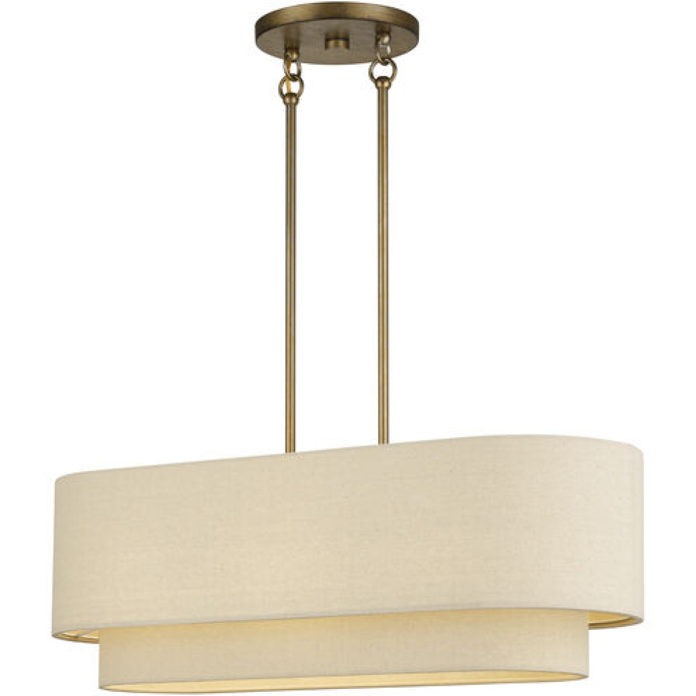 3 Light Antique Gold Leaf Medium Linear Chandelier