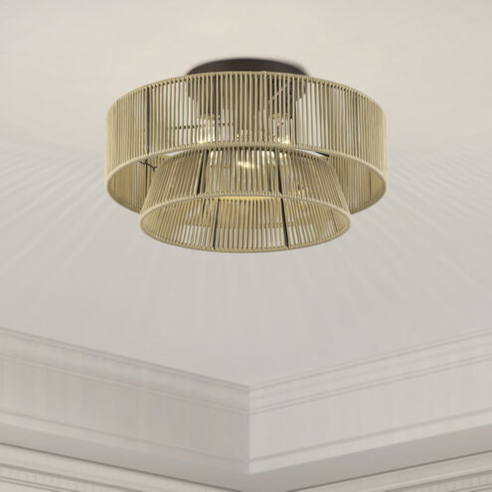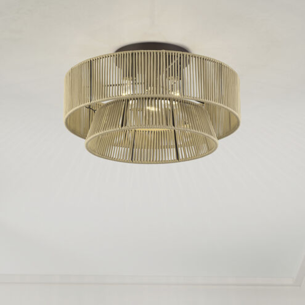 Laidback yet disciplined, the midcentury modern Florell lighting collection celebrates all versions of You: from “beach-haired weekender” to “visionary CEO”. with a vast selection in dramatic colors, this boho-inspired design features minimalist metal frames supporting drum-shaped, tapered and tiered shades – beautifully hand-threaded with sleek (fade- and fray-resistant) polyester rope. Semi-transparent texture allows for creating nuanced shadowing effects.