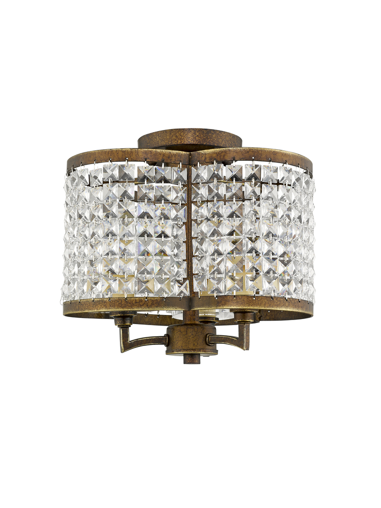 Crystal Strands Strung In A Decrotive Shade Design Define This Classically Glamorous Semi Flush Mount In Which The Bulbs Are Completely Shaded, Allowing The Light To Shine Through The K9 Crystal For A Warm, Intimate Lighting Feel.
