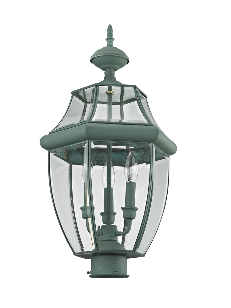 3 Light Verdigris Outdoor Post Lantern