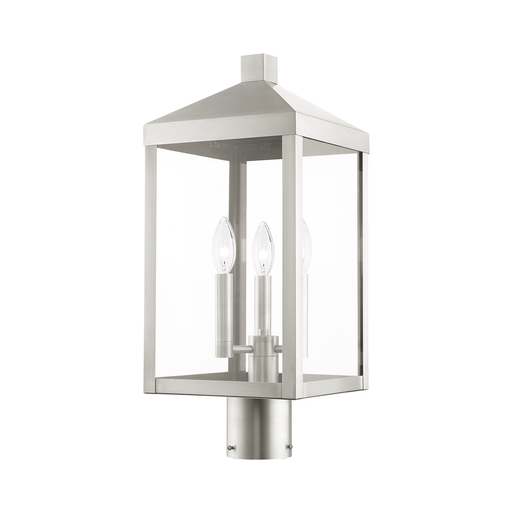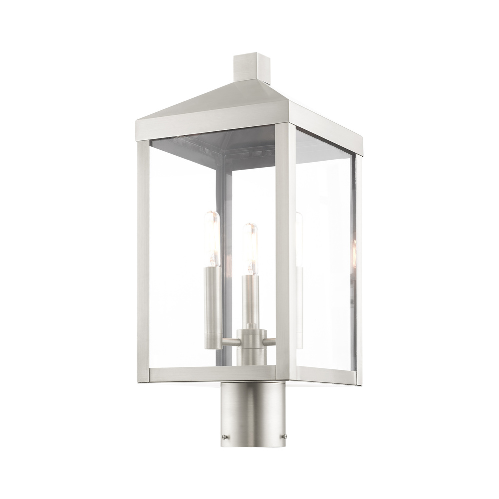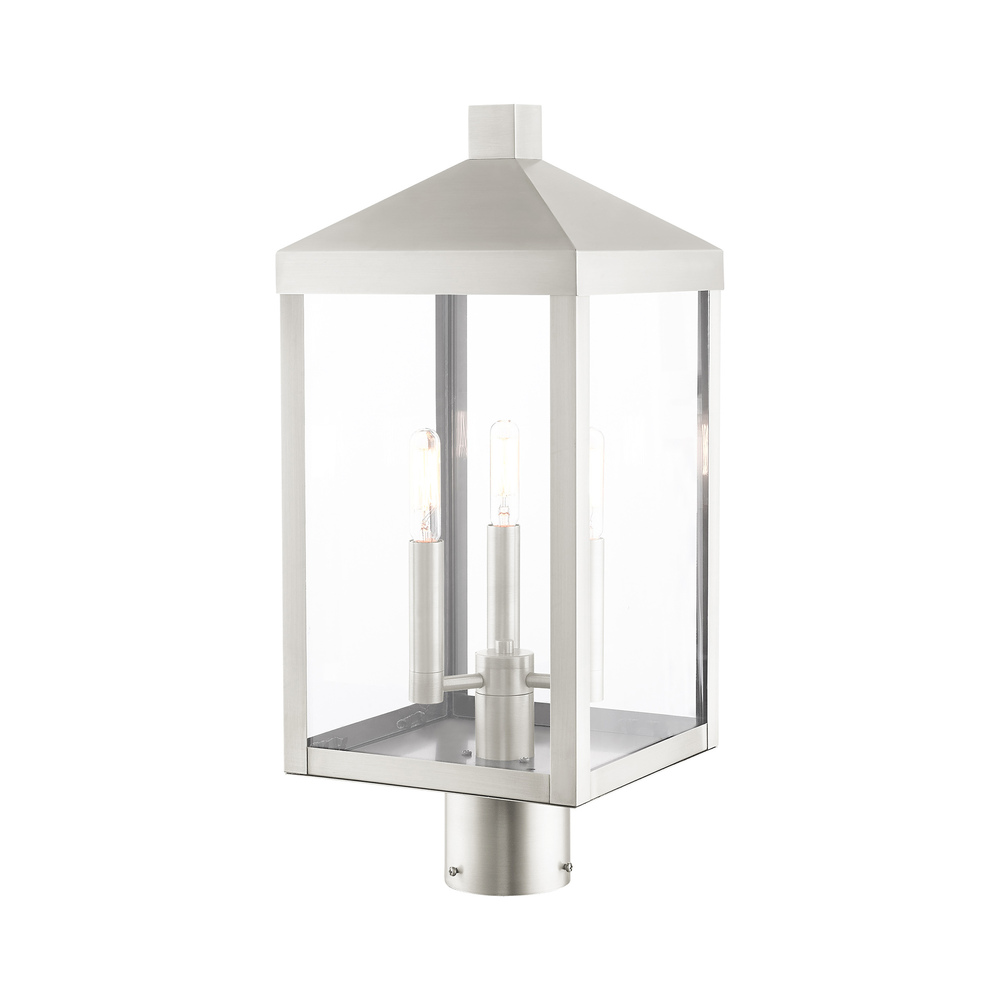 3 Lt Brushed Nickel Outdoor Post Top Lantern
