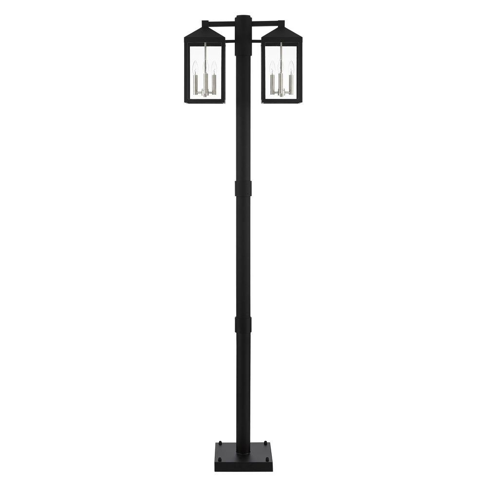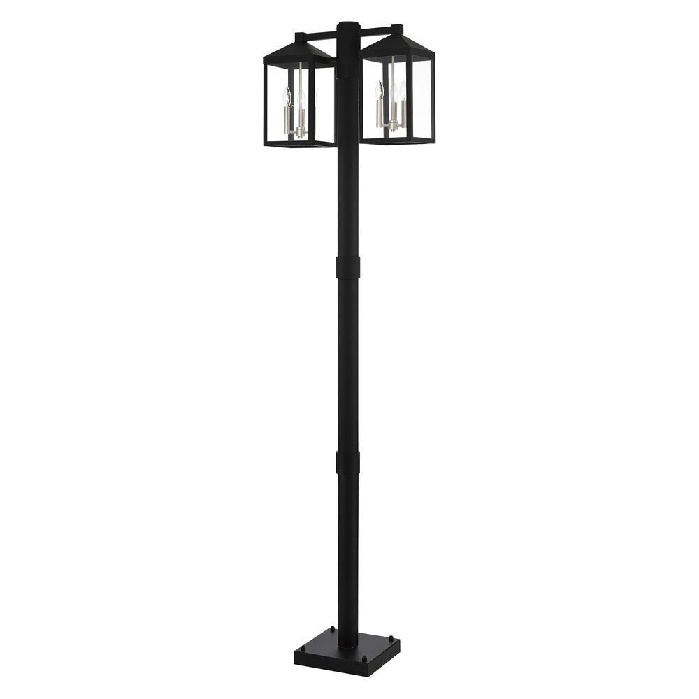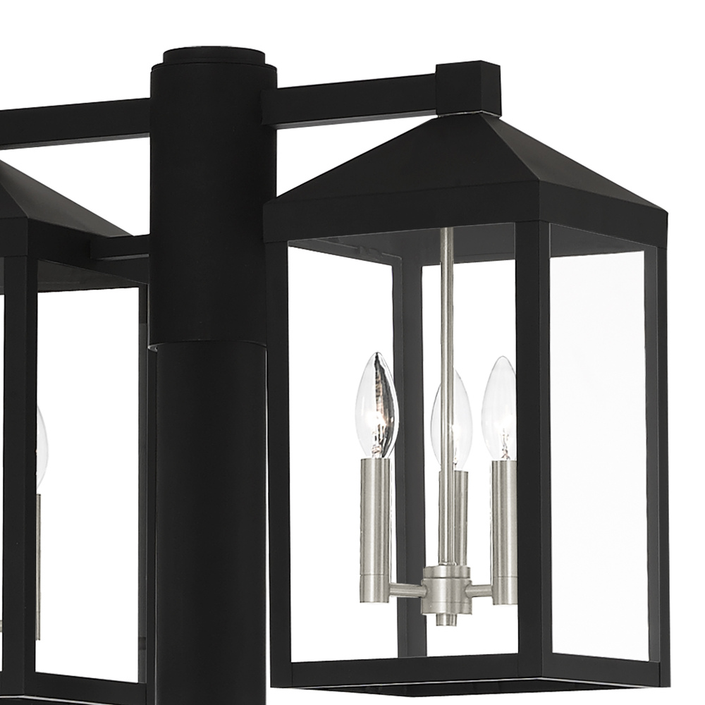 Multi Head Black Outdoor Post Light with Brushed Nickel Accents and Clear Glass