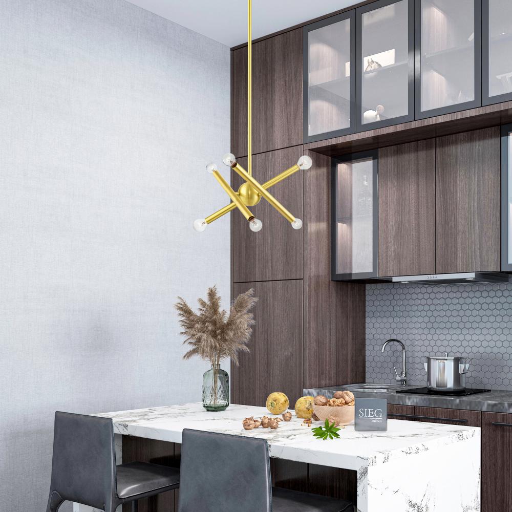 6 Light Satin Brass Chandelier