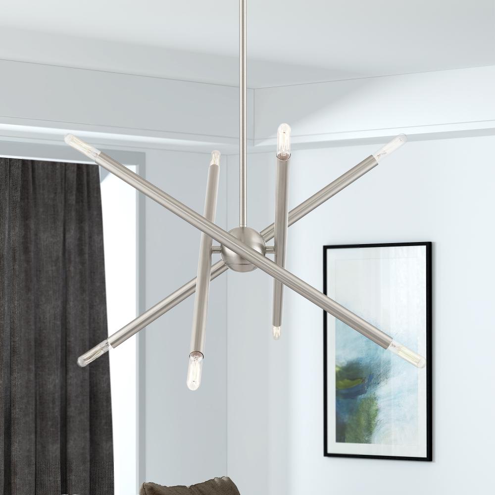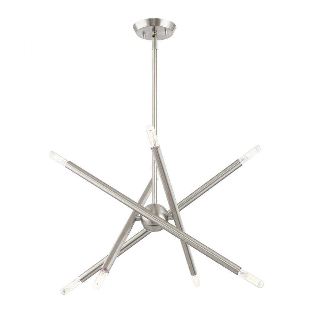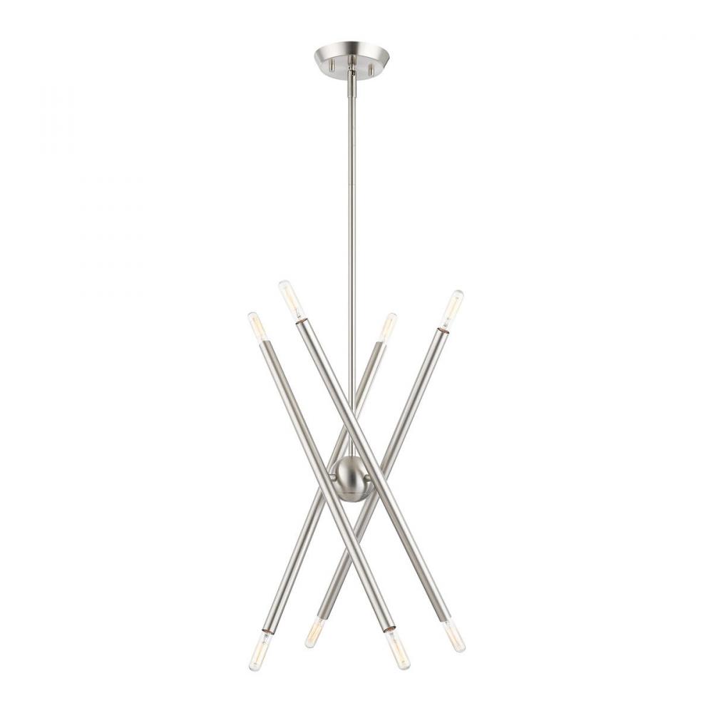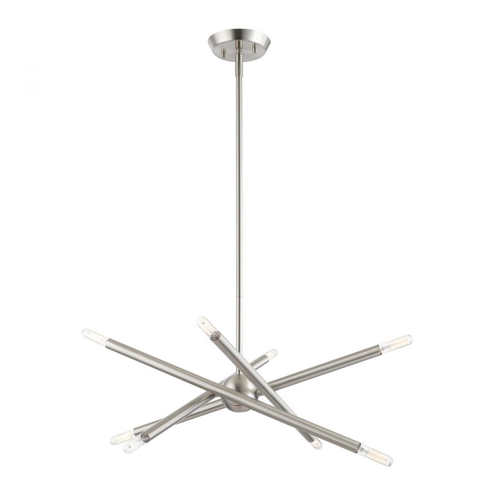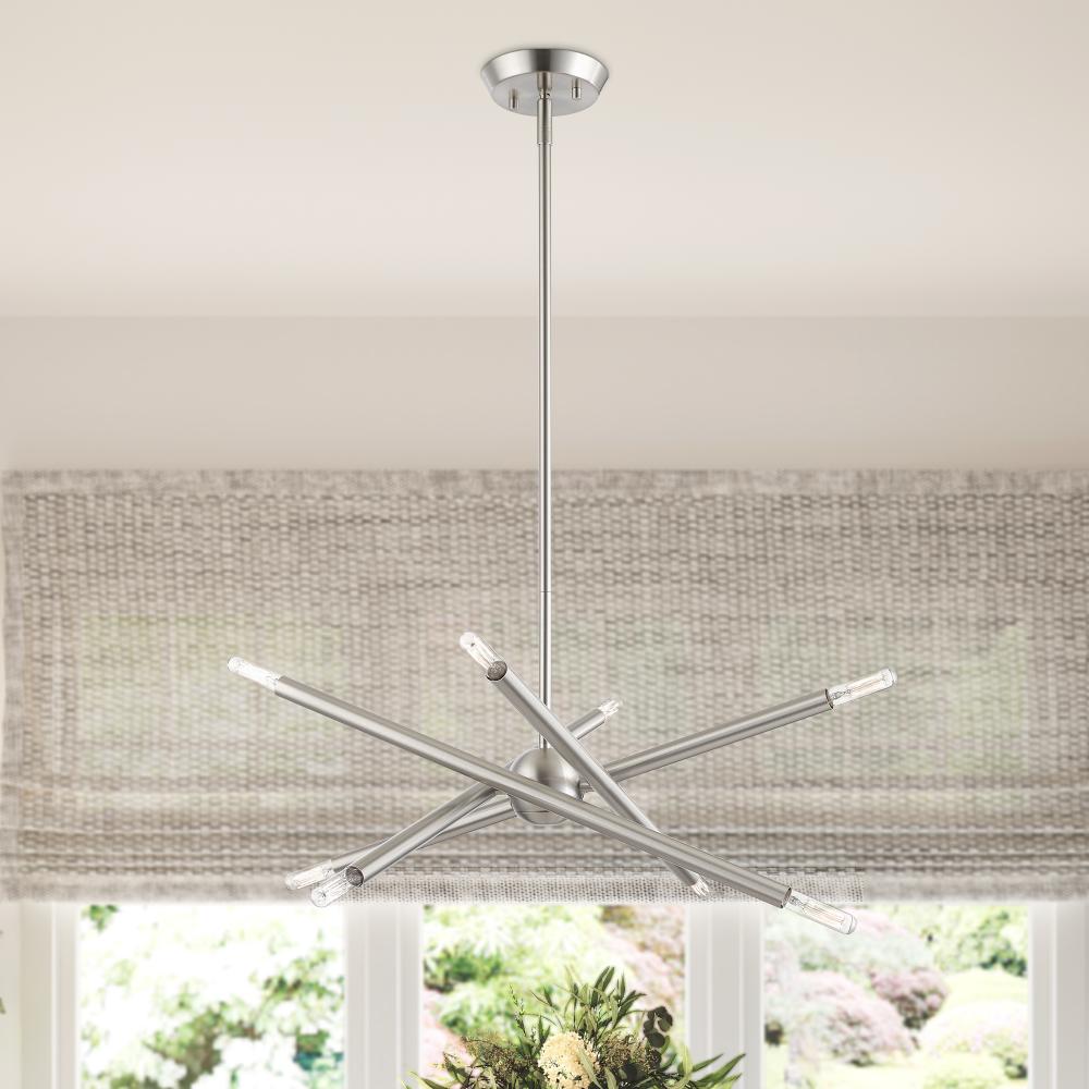 10 Light Scandinavian Gray Large Linear Chandelier with Brushed Nickel Finish Accents