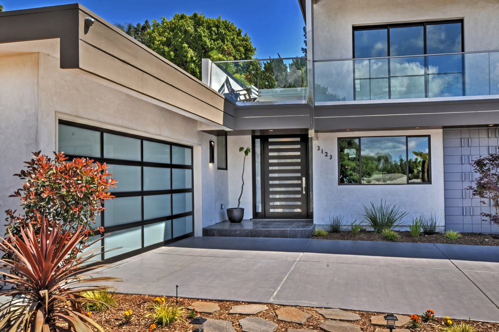 This great architectural outdoor design provides illumination from two places. A slash of light washes down the grated diffuser and out away from the wall while additional light is directed out the bottom straight down that washes the wall and illuminates