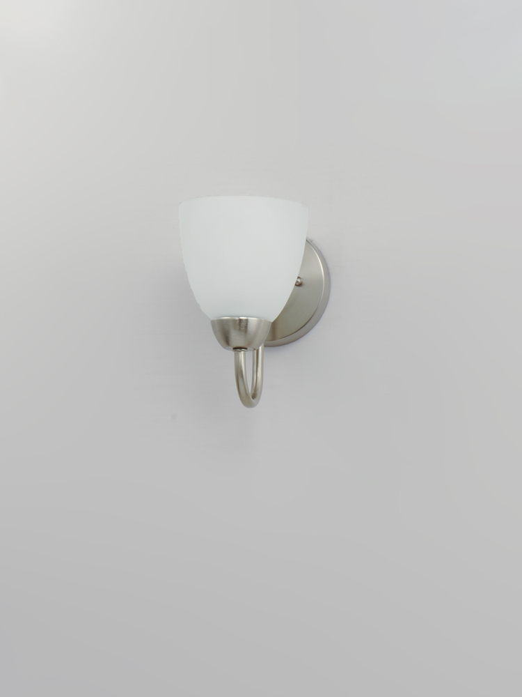 This transitional design works in any style home. Full length oval backplates support simple bell-shaped, Frosted glass shades. Available in Satin Nickel, Matte Black, and Polished Chrome.