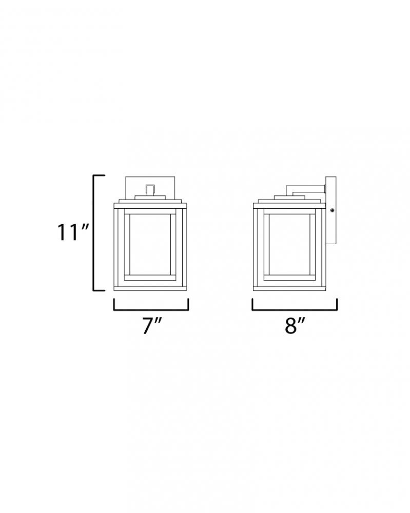 A dual framed structure creates dimension on these outdoor lighting fixtures that is both contemporary and transitional. The construction consists of two frames of square tubing and squared components. The inner frame's Clear Seedy glass reduces glare