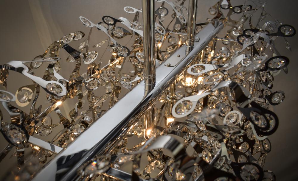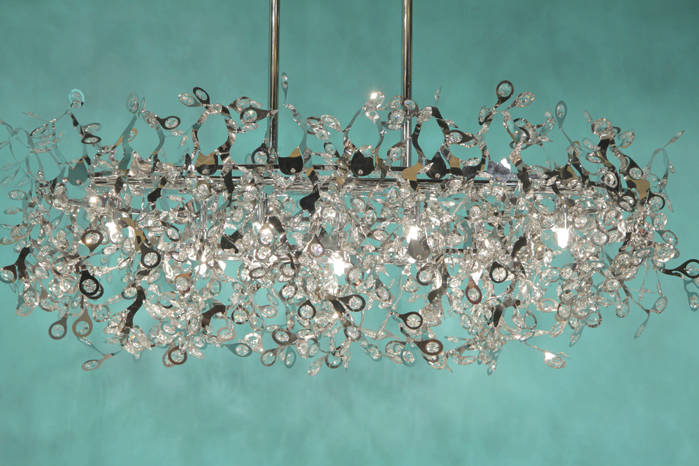 The Comet collection's Polished Chrome and thousands of Beveled Glass Crystals creates countless reflective surfaces that delicately and boldly illuminate with its xenon light source.
