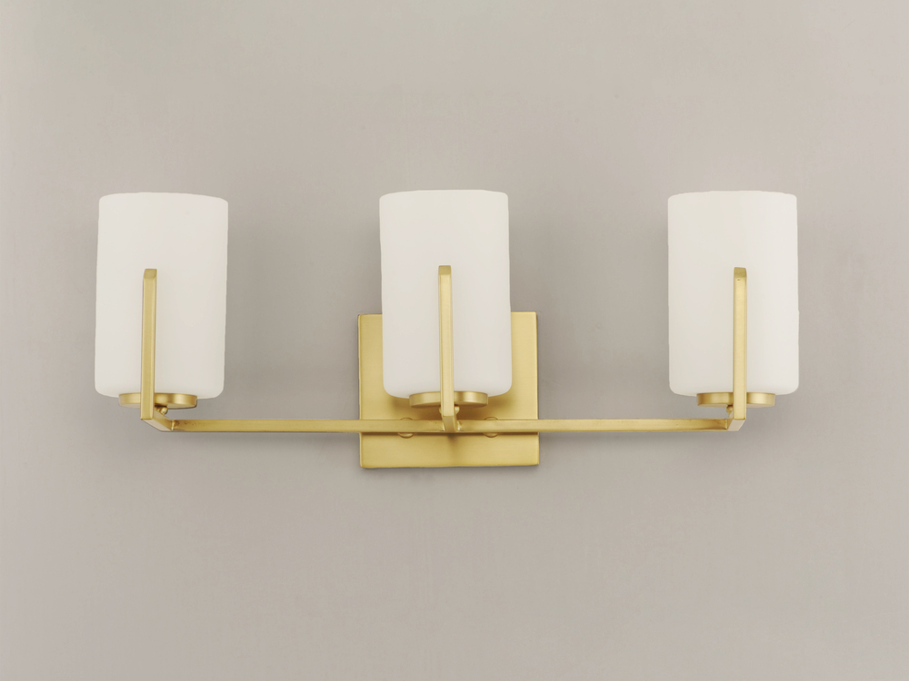 Inspired by the Modernist architect Edward Dart, this collection features straight line frames finished in Satin Brass, Satin Nickel, or Matte Black that support Satin White glass cylinders for a clean and modern look. The frames' ends turn up before t