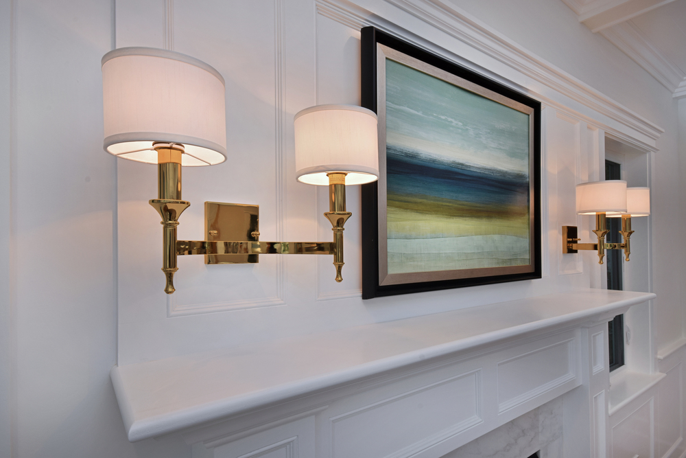 Arched channels of metal finished in your choice of Natural Aged Brass or Polished Nickel, form this minimalistic approach to traditional lighting. Oatmeal fabric shades adorn the top of metal candle covers that give this collection a tailored look.