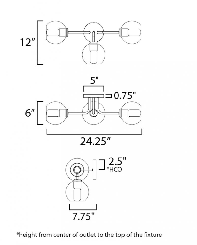 Clear glass globes on a Natural Aged Brass frame create a transitional design that is sure to please. The sloping arms level out to create a simple Mid Century Modern configuration. A full range of the products in this collection include chandeliers, penda