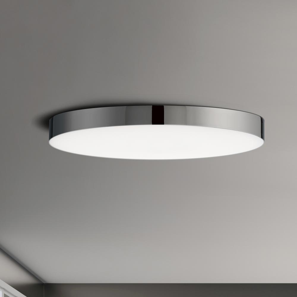 Thin discs of evenly illuminated LED create the impression of recessed lighting. The die-cast aluminum housings are available in White, Black, Satin Nickel, and Polished Chrome all with a thoughtfully recessed White polycarbonate diffuser. High efficiency