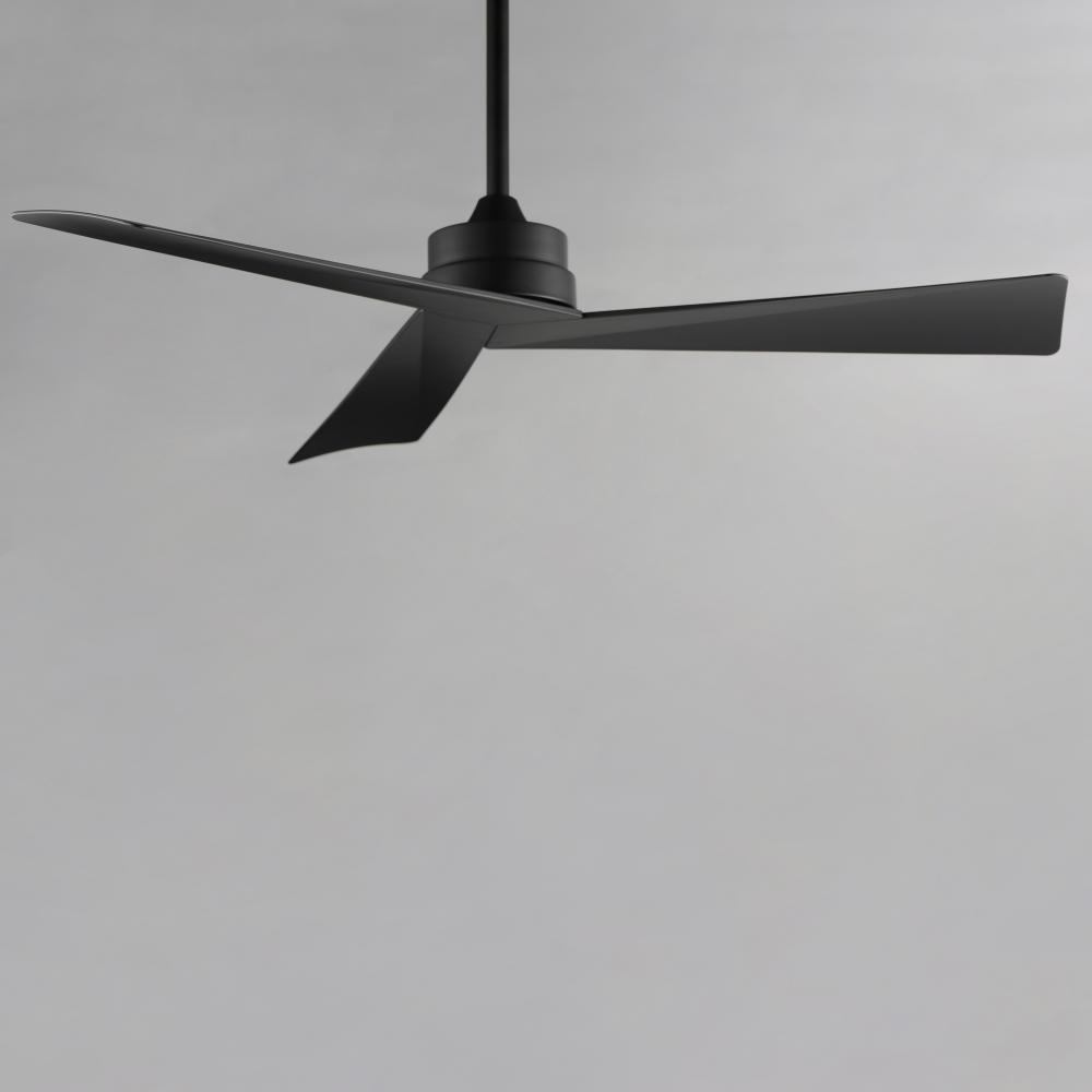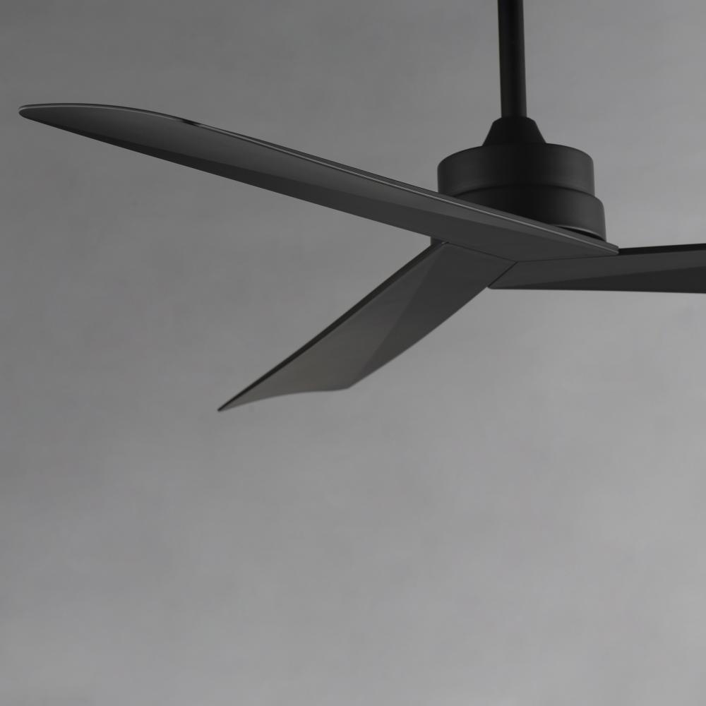 Sharp angular blades come together at the center housing of this fan for a modern, yet transitional look. Available in finishes that match most interior spaces, select from Matte Black, Satin Nickel with Greywood, Natural Aged Brass with White Blades and C